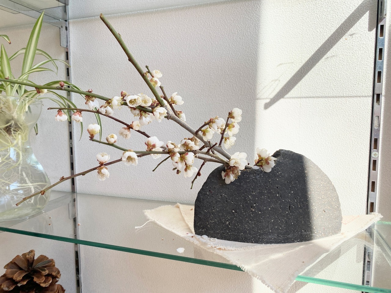 梅の枝をいただいたとの事で薬局に飾っていただき、店内でもひときわ目をひきます。